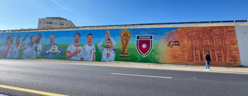 نفذت مديرية ثقافة الزرقاء جدارية فنية بعنوان "النشامى" على مساحة تقارب 800 متر مربع، في خطوة تهدف لدعم المنتخب الأردني ومساندة الطموح الوطني في تحقيق نتائج مشرفة خلال نهائيات كأس العالم 2026.