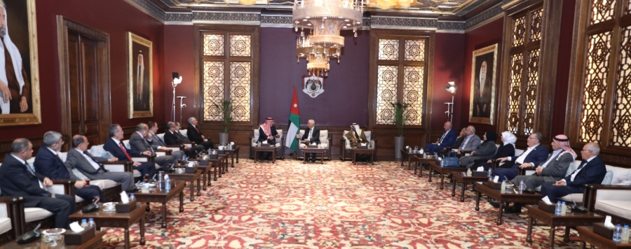 التقى رئيس الديوان الملكي الهاشمي يوسف حسن العيسوي، اليوم الخميس، في الديوان الملكي الهاشمي، وفدًا من أعضاء جمعية اللد، ووفدًا من ملتقى النخبة، في لقاءين منفصلين.