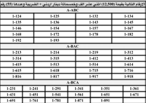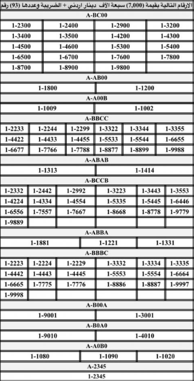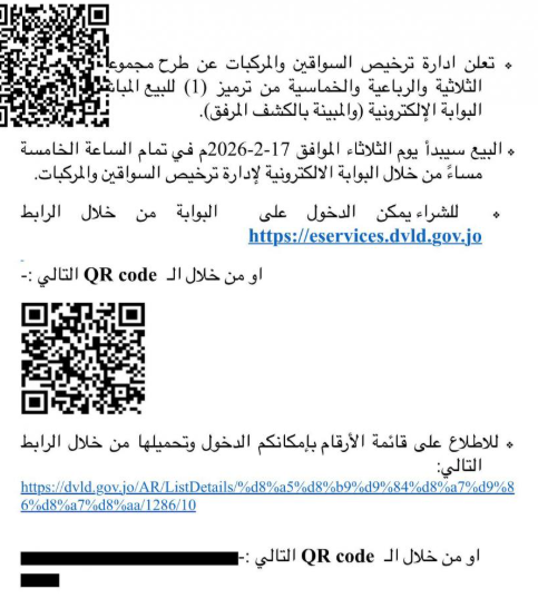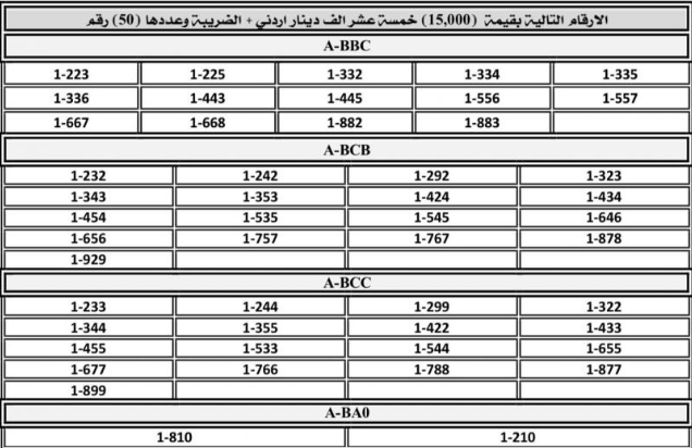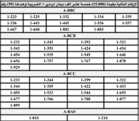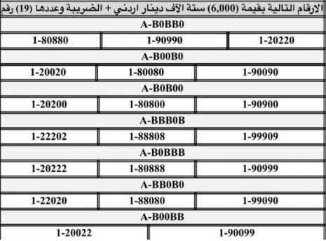 أعلنت إدارة ترخيص السواقين والمركبات عن بدء طرح أرقام مميزة من الأرقام الثلاثية، الرباعية، والخماسية للبيع المباشر عبر بوابتها الإلكترونية، في خطوة جديدة لتسهيل عمليات الشراء وتوفير خيارات مميزة للمواطنين.