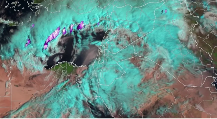 تشير صور الأقمار الاصطناعية إلى تحرك منخفض جوي أشبه بالخماسيني نحو الحوض الشرقي للبحر الأبيض المتوسط، وتحديداً مقابل السواحل الشمالية المصرية.