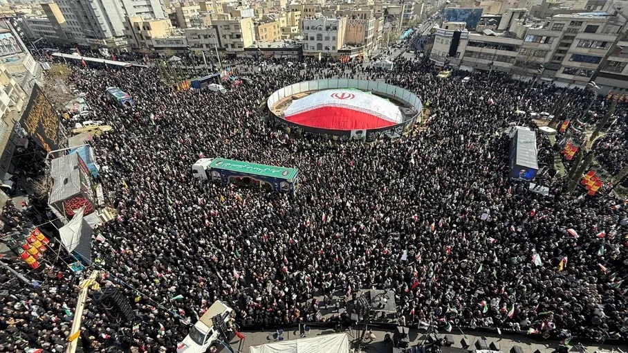 شہداء، علی لاریجانی، اور جنرل سلیمانی کا جلوسِ جنازہ تہران کے میدانِ انقلاب (انقلاب اسکوائر) سے شروع ہو چکا ہے۔ pic.twitter.com/CFiM91tiee
