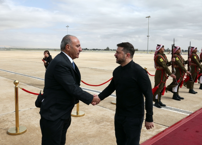 وصل الرئيس الأوكراني فولوديمير زيلينسكي إلى عمان، اليوم الأحد، ضمن جولة يجريها في الإقليم.