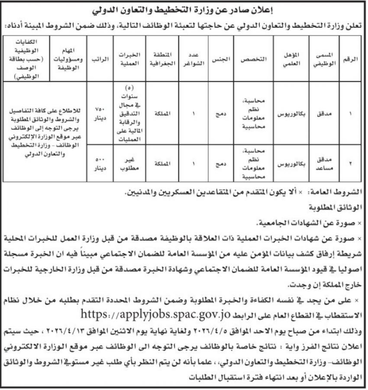 أعلنت دوائر ومؤسسات حكومية اليوم الخميس، عن حاجتها لتعبئة وظائف شاغرة.