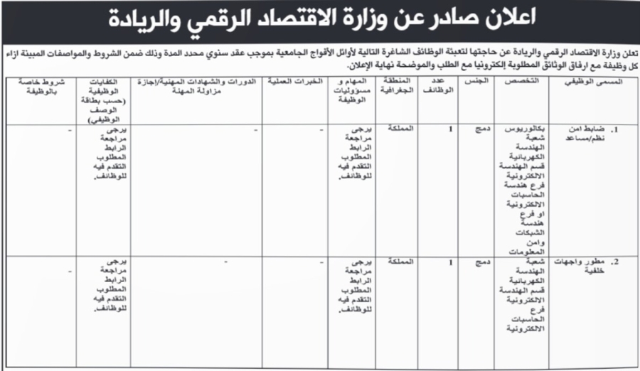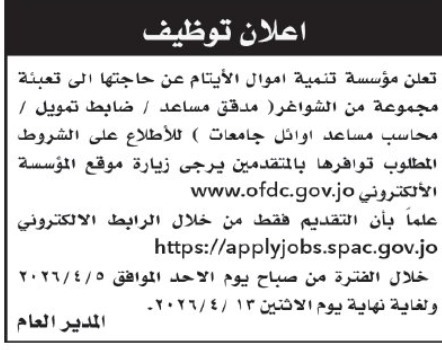 اعلنت دوائر حكومية اليوم الخميس عن حاجتها لتعبئة وظائف شاغرة.