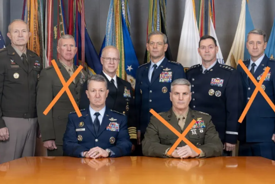 وأرفقت السفارة التغريدة بلقطات لضباط أمريكيين بارزين، مع وضع علامة (X) على أسماء مَن تمت إقالتهم، في إشارة ساخرة إلى أن "التغيير" حدث داخل الولايات المتحدة نفسها، لا في إيران.