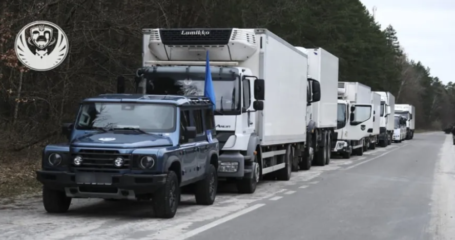 كما أظهر الفيديو الذي بث عبر تلغرام مراقبين يرتدون ملابس تحمل شارات الصليب الأحمر.