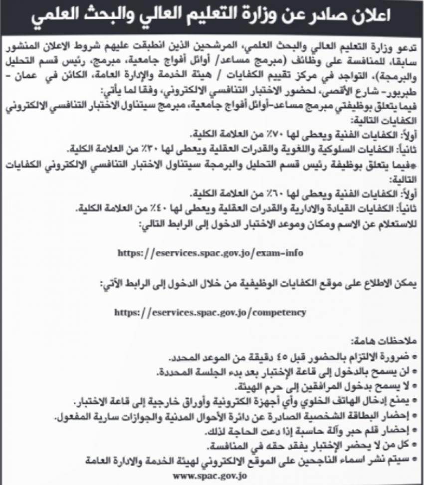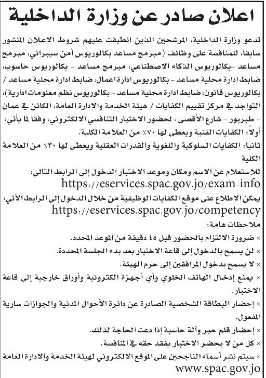 دعت وزارات ودوائر حكومية اليوم الاثنين، المرشحين الذين انطبقت عليهم شروط الاعلانات المنشورة سابقا للامتحان التنافسي.