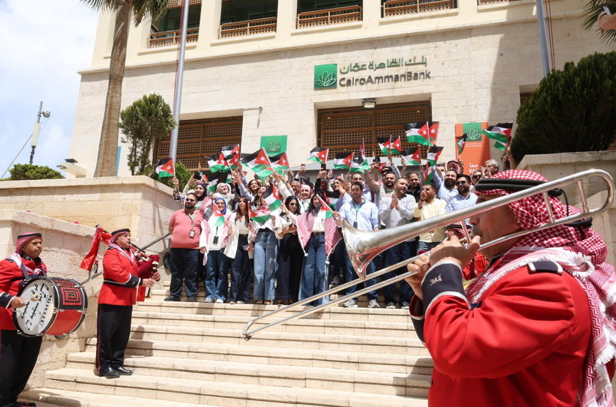 احتفل موظفو بنك القاهرة عمان بيوم العلم الأردني في أجواء وطنية مميزة، تجسيدًا لمعاني الانتماء والولاء للوطن وقيادته الهاشمية، وبمشاركة الفرقة الموسيقية للقوات المسلحة الأردنية – الجيش العربي.
