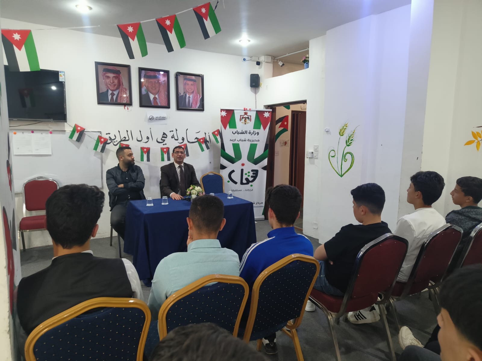 وقدمت المدربة سهام الكردي، بمساعدة متطوعات المركز ديما العمري وروان العمري، شرحًا حول مناسبة يوم العلم في الأردن، باعتبارها مناسبة وطنية يحتفل بها الجميع تعبيرًا عن الانتماء والولاء للوطن، حيث تم اعتماد 16 نيسان من كل عام للاحتفال بها، لما تحمله من دلالات تاريخية تعكس وحدة وهوية الوطن.