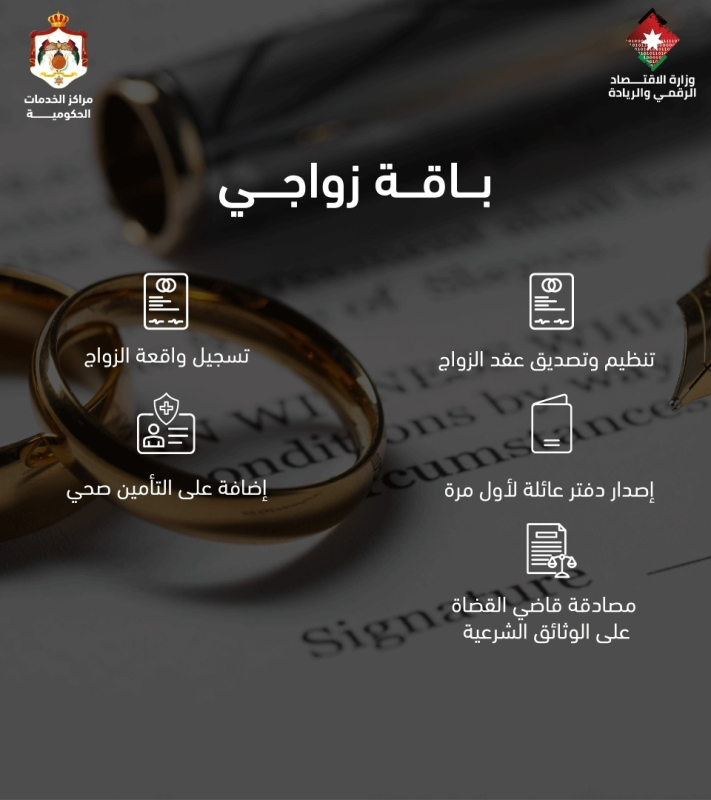 أعلنت وزارة الاقتصاد الرقمي عن إطلاق "باقة زواجي" في مراكز الخدمات الحكومية.