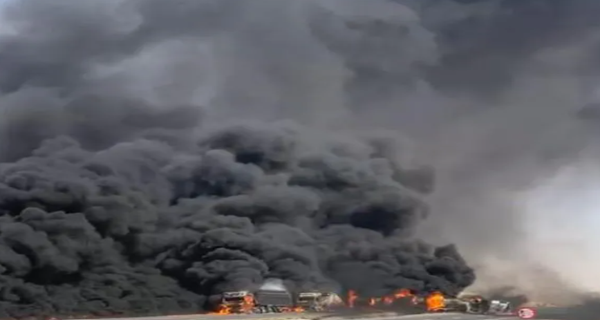 الدوريات الخارجية تكشف تفاصيل حادث تصادم واشتعال 4 مركبات على الطريق الصحراوي